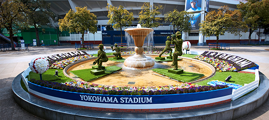 全国都市緑化よこはまフェアの「みなとガーデン」にて、横浜スタジアムに隣接する横浜公園内噴水に「ベイスターズガーデン」を施工しました。