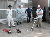 その後、チェーンソー・刈払機・トリマーといった造園業に欠かせない機械についてのレクチャーをしました。