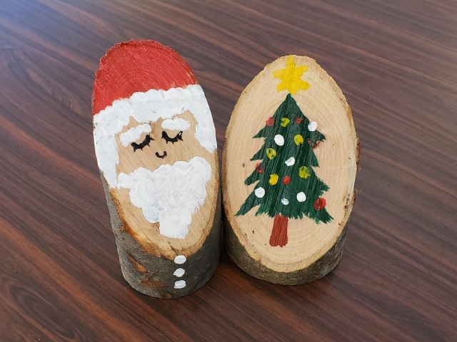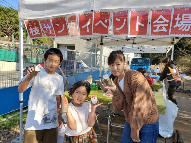 工事で伐採した枝を再利用し、枝の切り株にサンタクロースの絵をお絵描きする楽しいイベントです。
