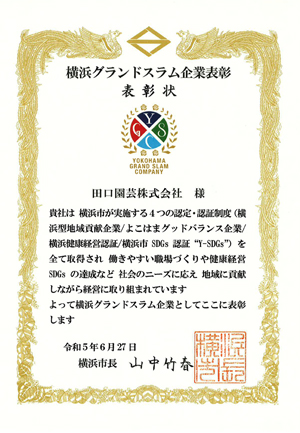 横浜市が令和4年6月に創設した「横浜グランドスラム企業表彰」の対象として当社が選定され、表彰式に出席させていただきました。