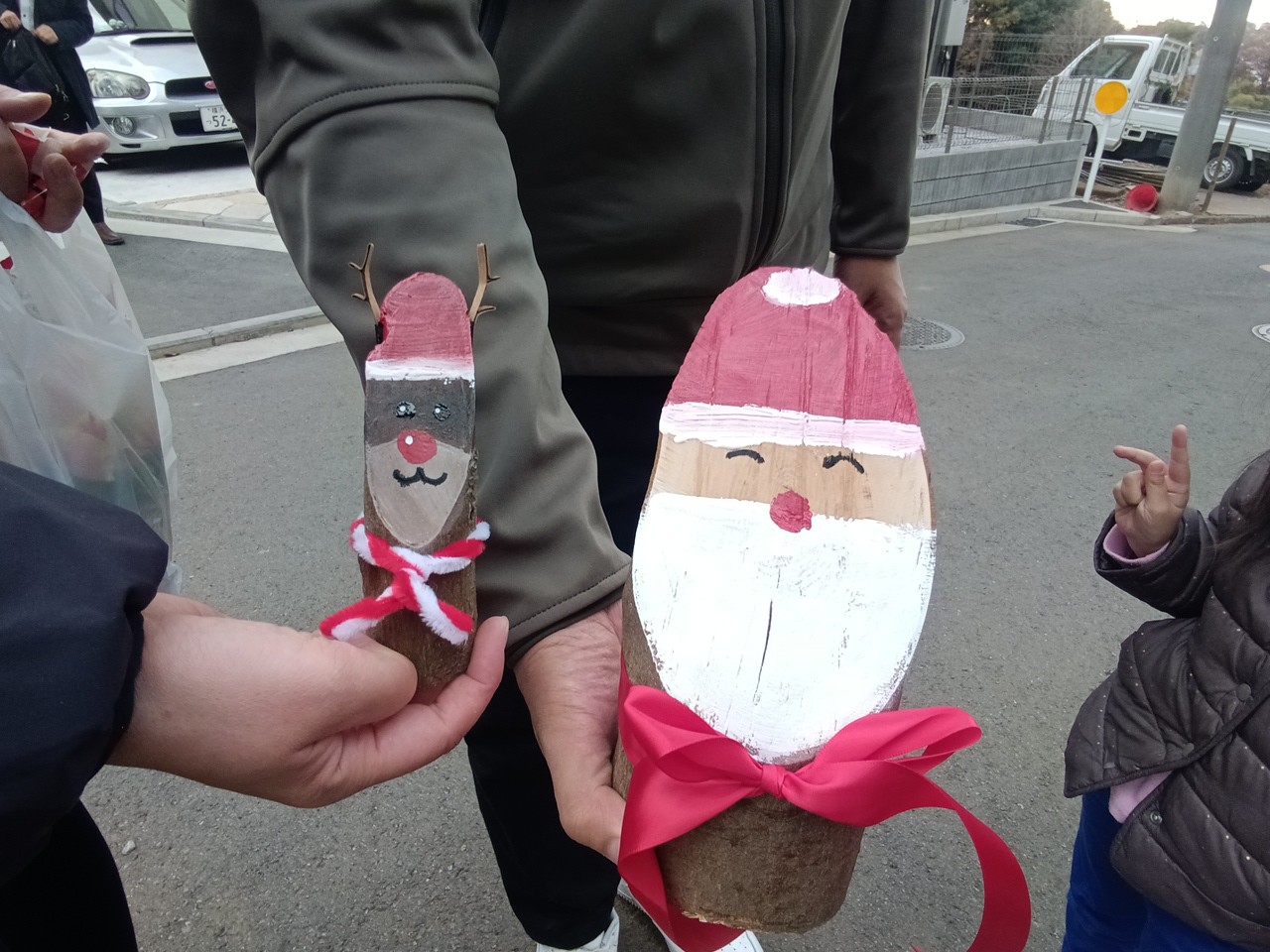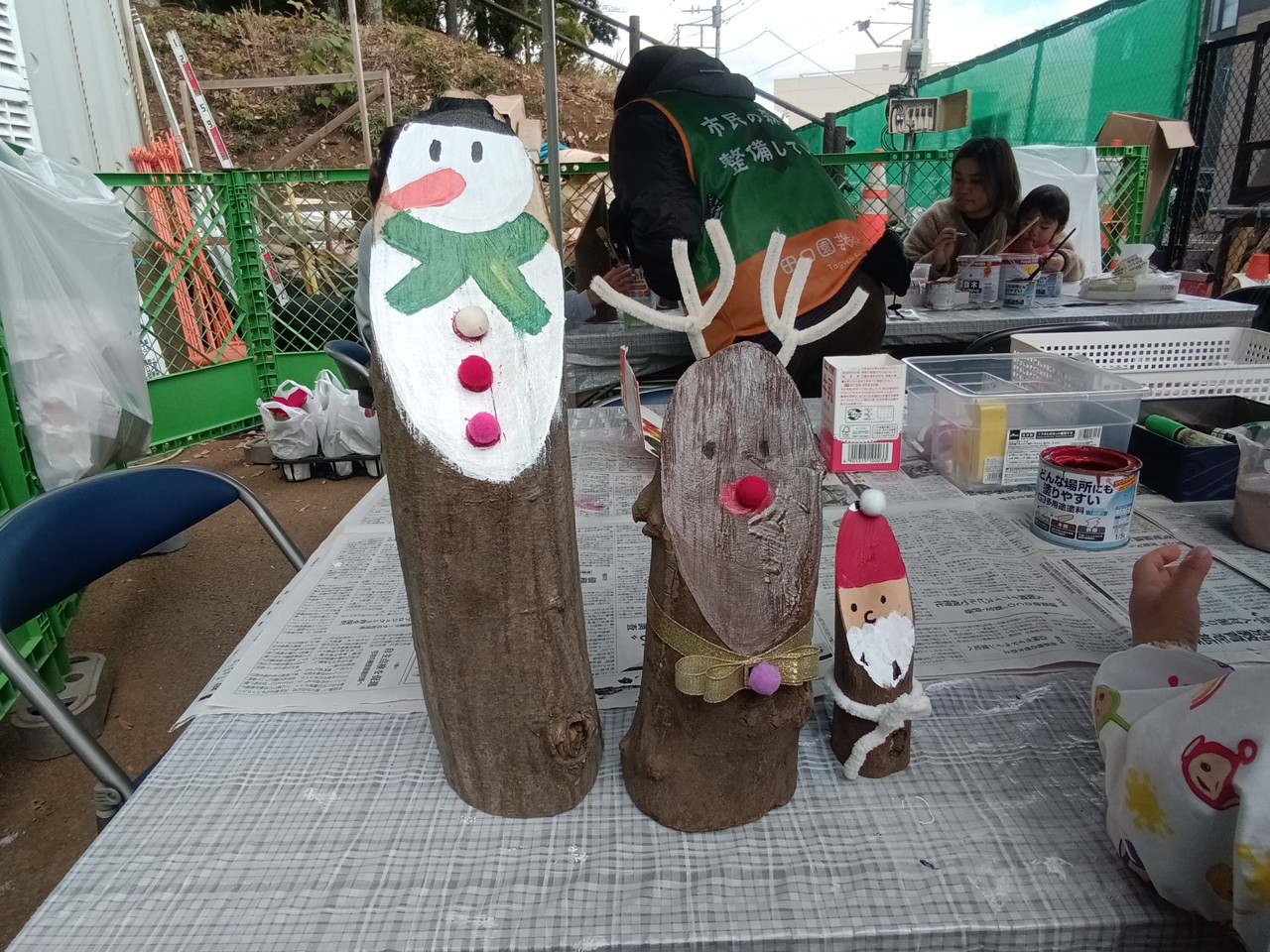 12月6日、整備工事中の上菅田町市民の森の管理スペースにて、伐採した木の枝にサンタクロースやトナカイの絵を描いて楽しむイベントを開催しました。
